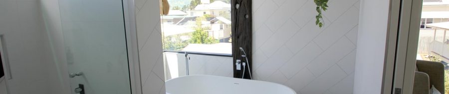 Modern clean lines with timeless black white and the warmth of timber. Caesar stone tops 80 mm thick integrated fridges and appliances and vanities have concrete benchtops.