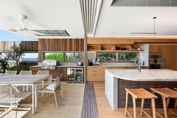 With a soft coastal palette, thoughtful joinery, and seamless flow from kitchen to deck, this space is designed for both function and lifestyle—perfectly suited to its beachside setting.