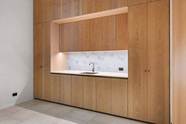 Warm American Oak Veneer: Rich, natural grain beautifully highlights the cabinetry, offering warmth and organic character throughout the home.