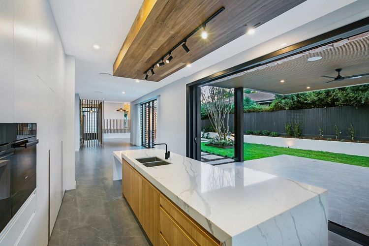 Caesarstone tops 80 mm thick integrated fridges and appliances and vanities have smart stone benchtops. We also renovated all wardrobes and built ins.